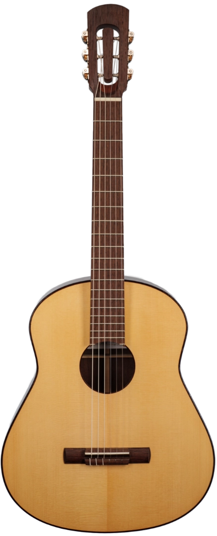Cut from carefully selected German spruce, chosen for its clarity, projection, and responsiveness. The back, sides, bridge, and fingerboard are crafted from wenge, an African timber valued for its density, tonal focus, and understated elegance.