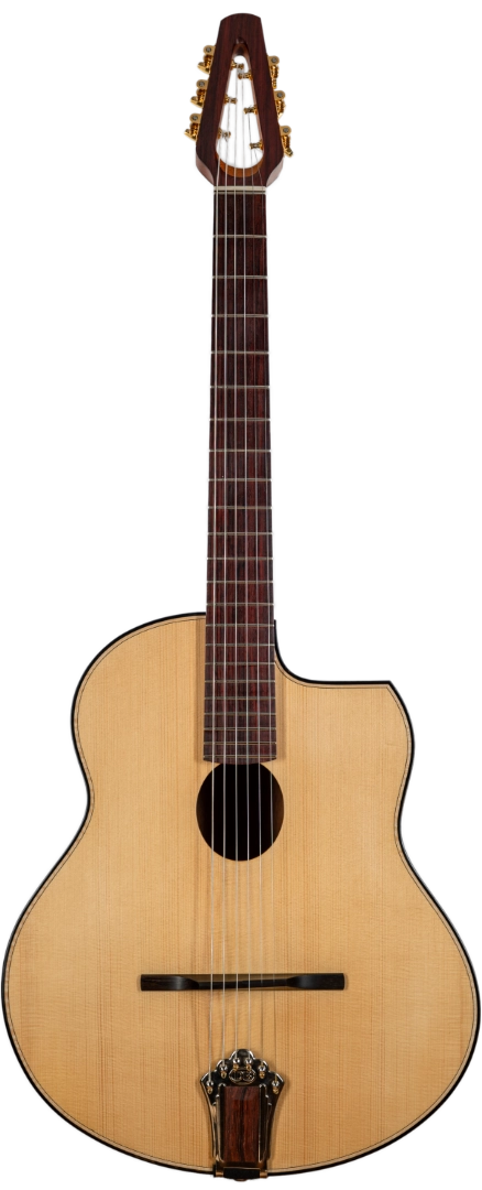 Inspired by the instruments associated with Django Reinhardt, this model carries forward the clarity, projection, and rhythmic precision of the gypsy jazz tradition.